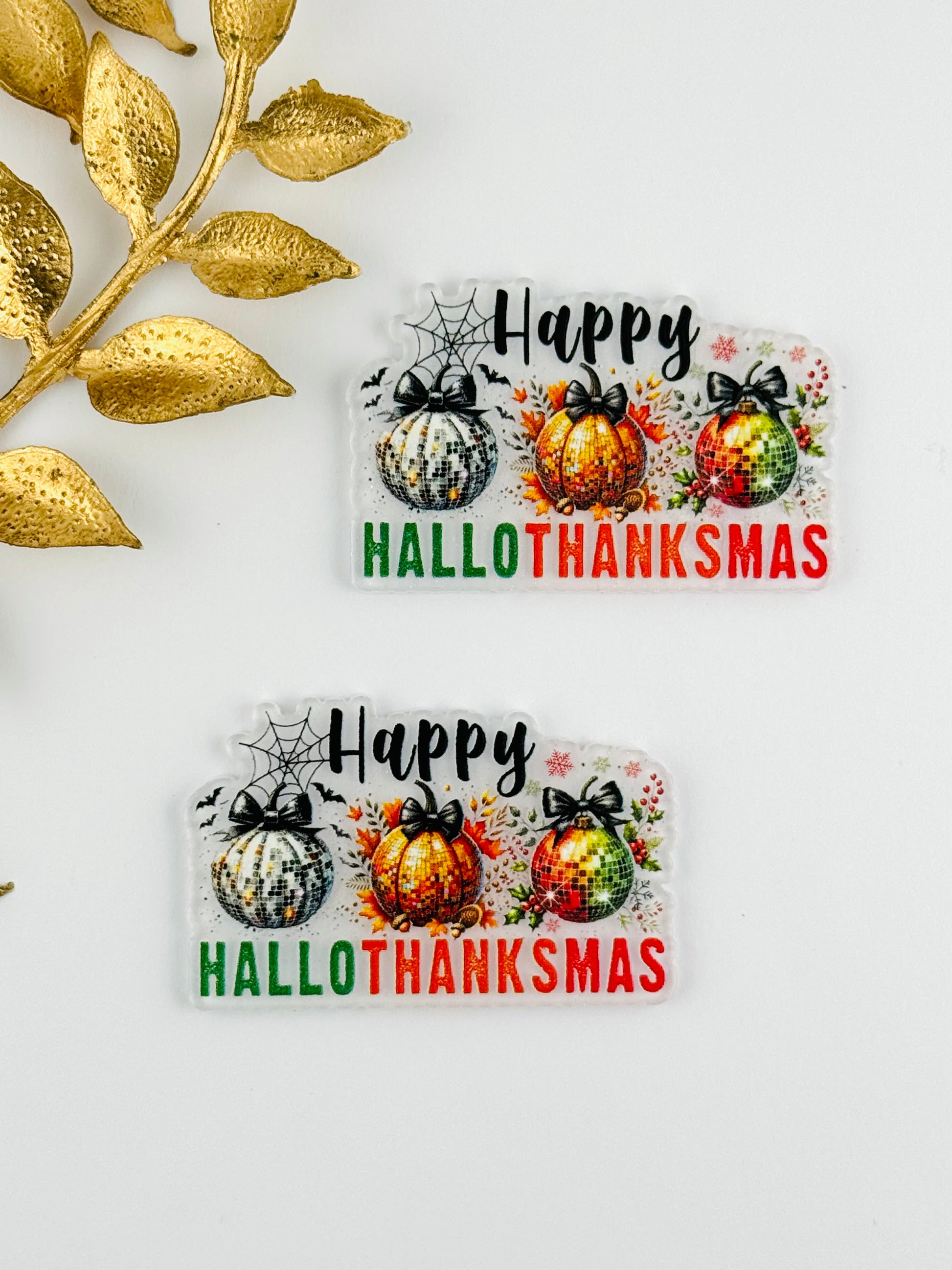 Glitter Acrylic Flatback ~ 133 ~ Happy HalloThanksMas