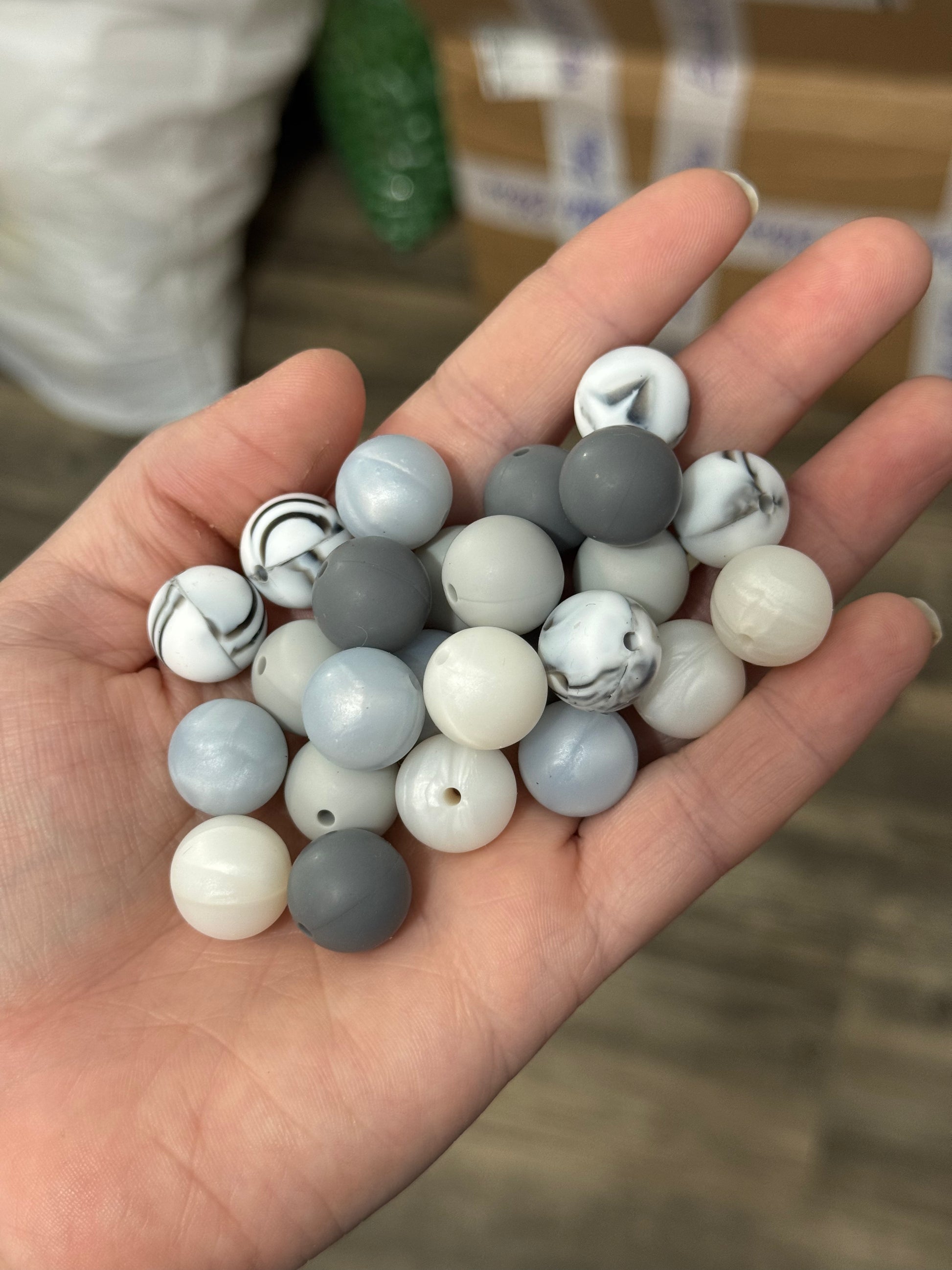 Monochrome 15mm Silicone Bead Mix (25ct)
