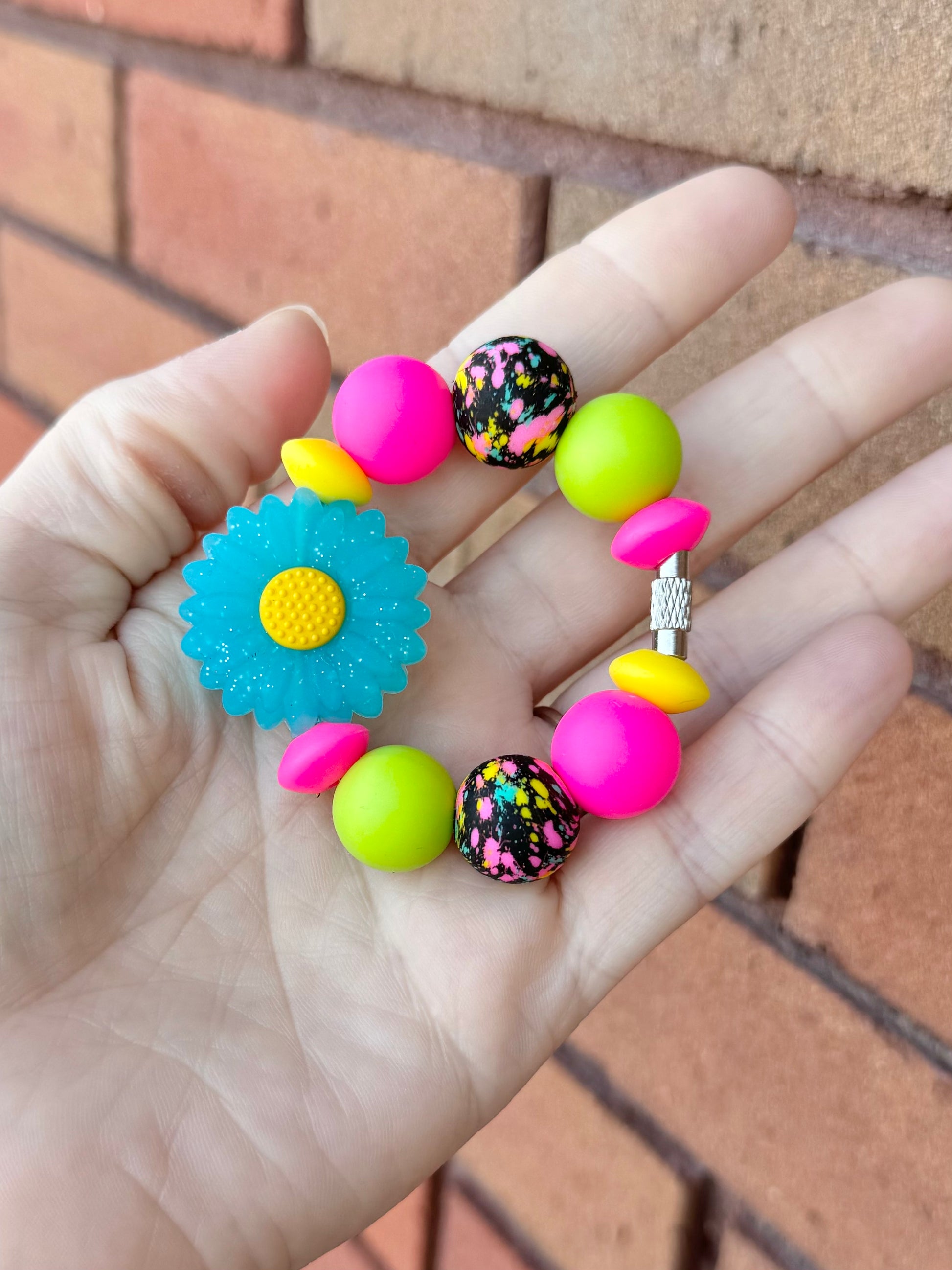 (Wholesale) Cup Charm ~ Glitter Turquoise Neon Daisy